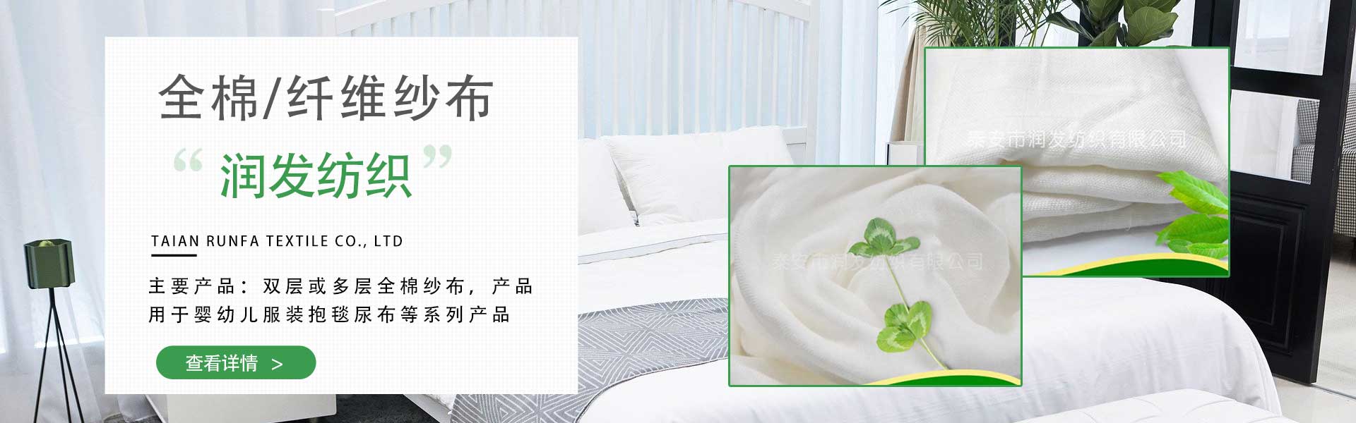 泰安市潤發(fā)紡織有限公司是一家規(guī)上民營紡織企業(yè),主要產(chǎn)品:雙層或多層全棉紗布,產(chǎn)品用于嬰幼兒服裝抱毯尿布等系列產(chǎn)品,產(chǎn)品具有吸水性強,透氣性強的特點,產(chǎn)品發(fā)往歐美日本等國,產(chǎn)品具有廣闊的前景。